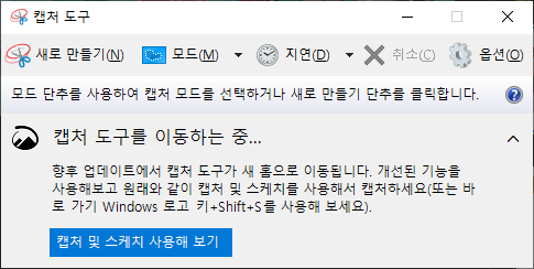 Win + Shift + S 를 클릭하면 아래와 같은 화면이 나온다.