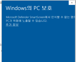 이런 메시지가 나오면 추가 정보를 눌러서 설치하시면 됩니다.