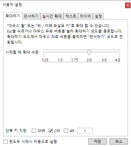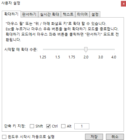 Ctrl+1 : 화면 확대모드(종료: 화면이동 상태에서 마우스 우클릭 or ESC)