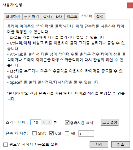 Ctrl+3 : 타이머(종료: 마우스 우클릭 or ESC)