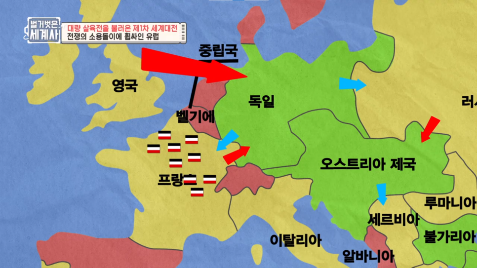 프랑스가 전쟁 대비를 잘 해놨기 때문에 비교적 방비가 허술한 중립국 벨기에로 침입한 독일군