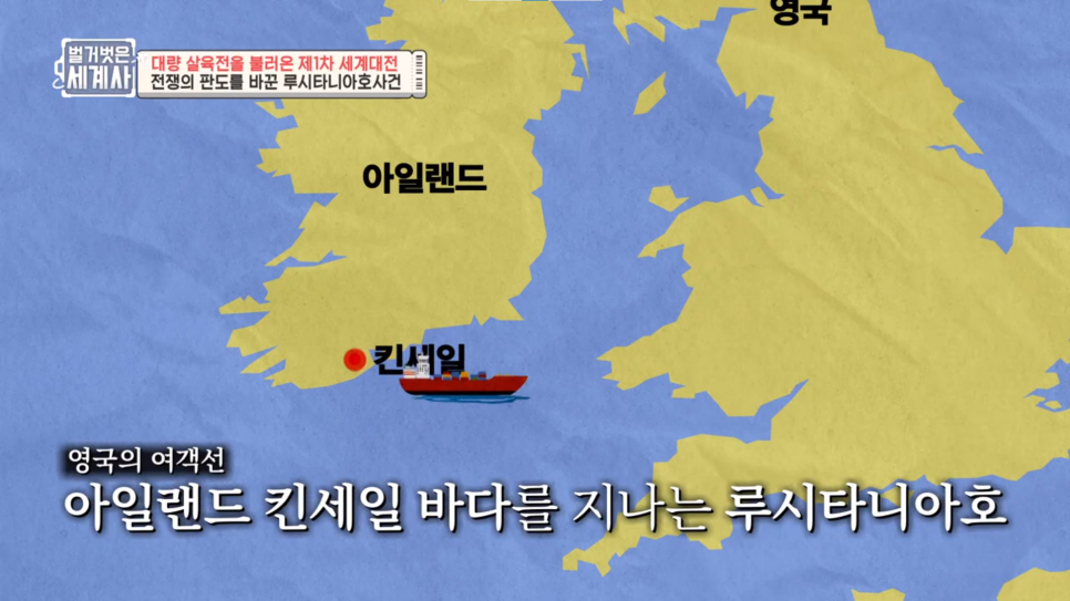 아일랜드 킨세일 바다를 지나는 영국의 여객선 루시타니아호
