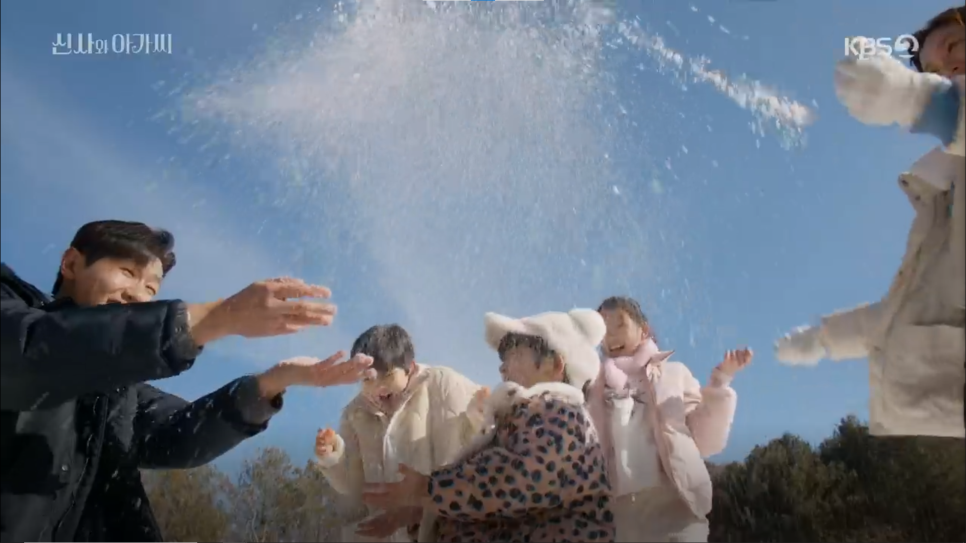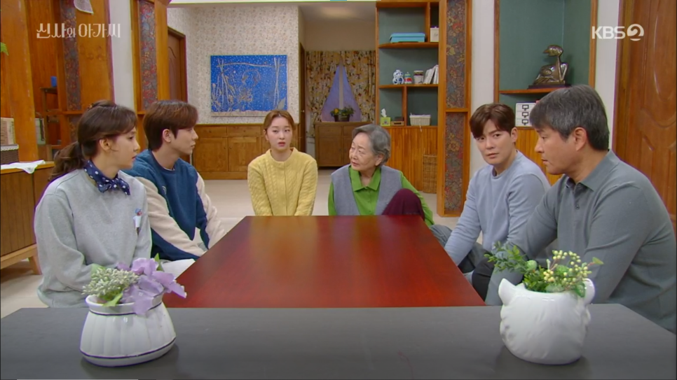아침 모든 가족이 모여서 박단단을 맞이한다.