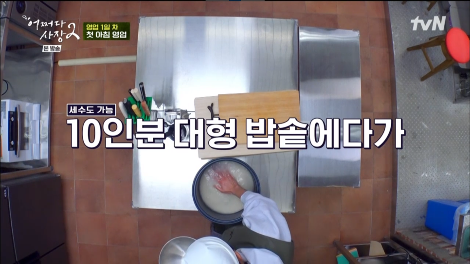 10인분 대형 밥솥에다가 밥을 하는 조사장