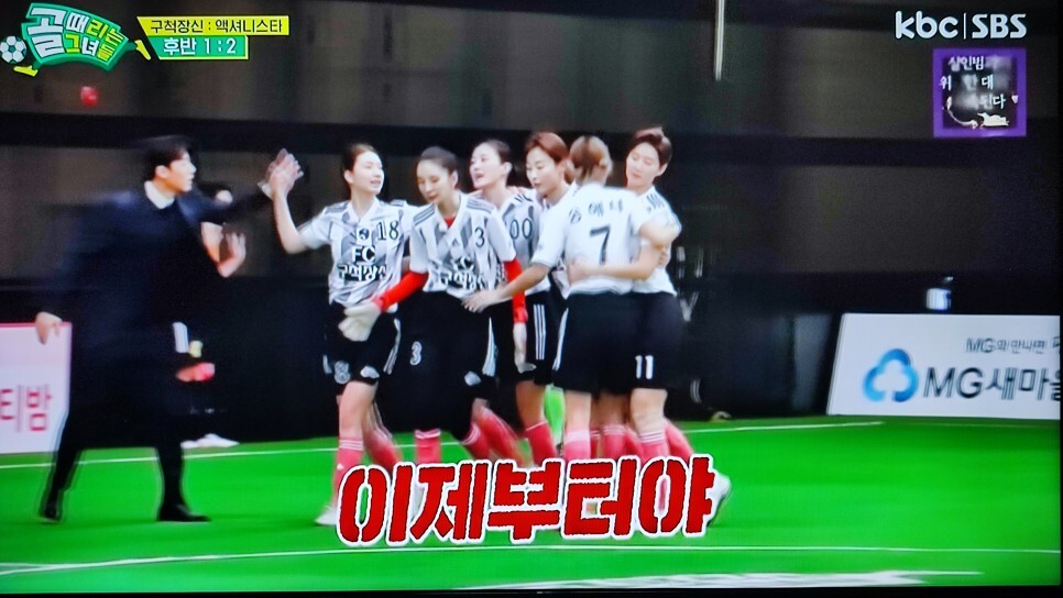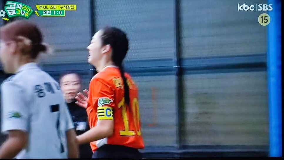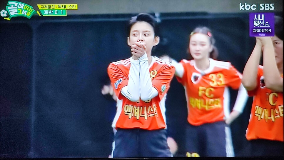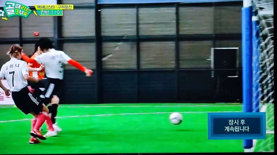 액셔니스타의 이혜정의 골로 1:0 앞서 갑니다.