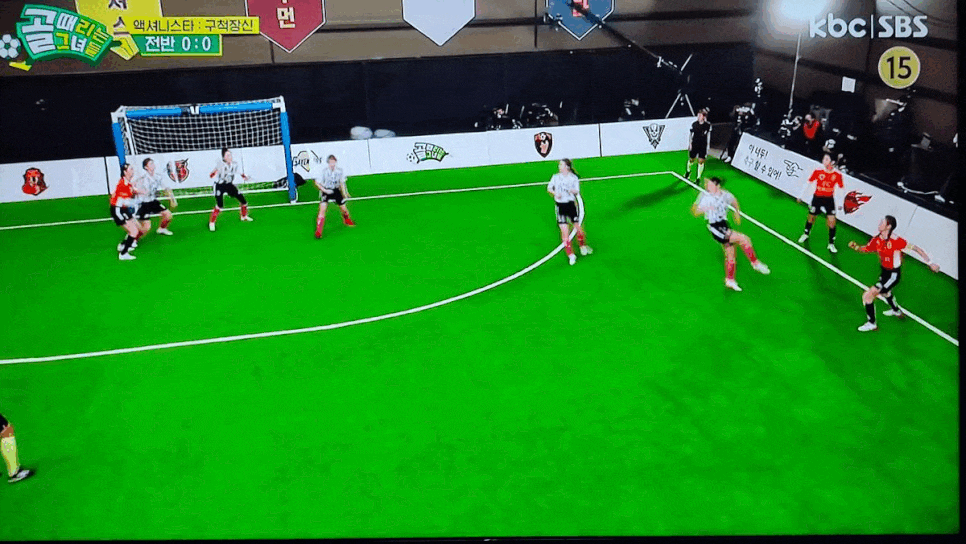 두 팀이 팽패한 경기를 펼치는데 구척장신에게는 골 기회가 별로 없는데요.