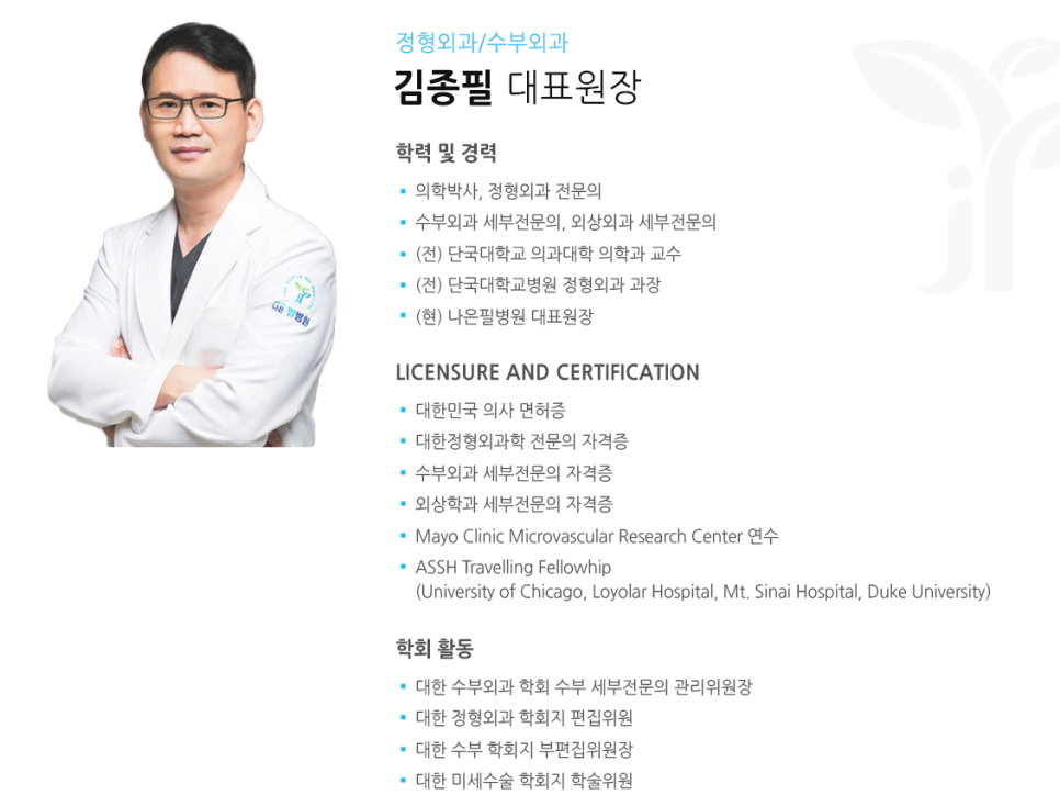인터넷 검색을 하니 나은필병원 김종필 선생님입니다.