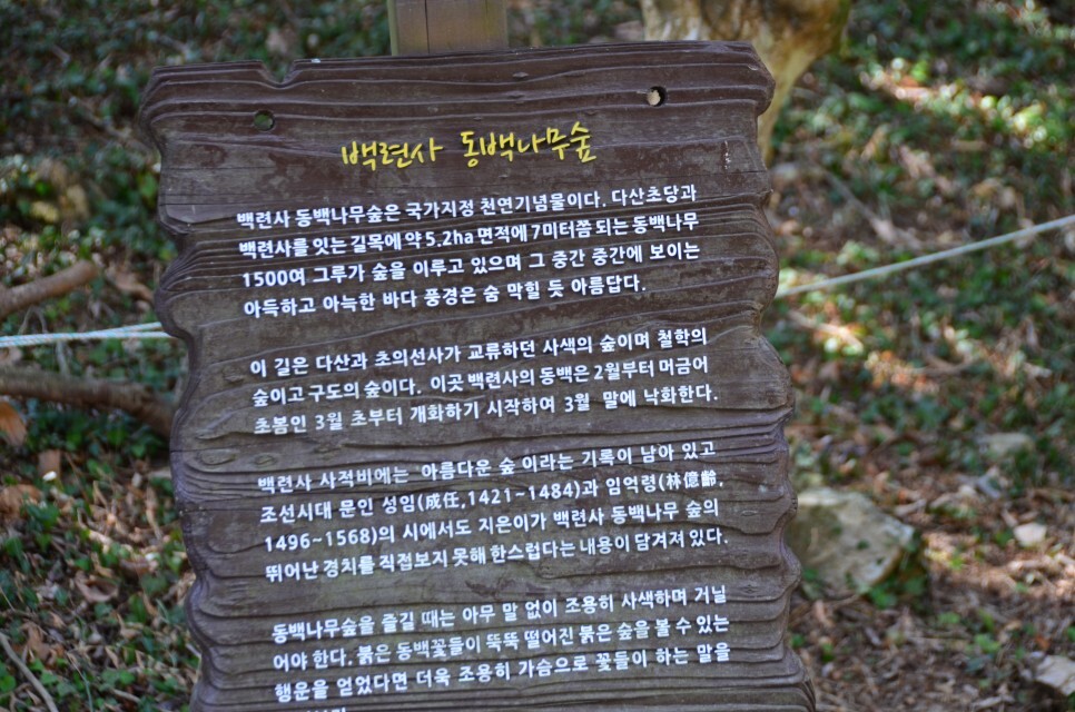 동백나무숲을 즐길 때는 아무 말 없이 조용히 사색하며 거닐어야 한다고 하네요.