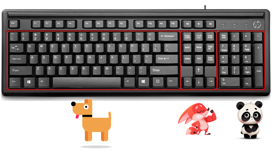 키보드는 이렇게 3개의 그룹으로 나뉘어 있습니다.