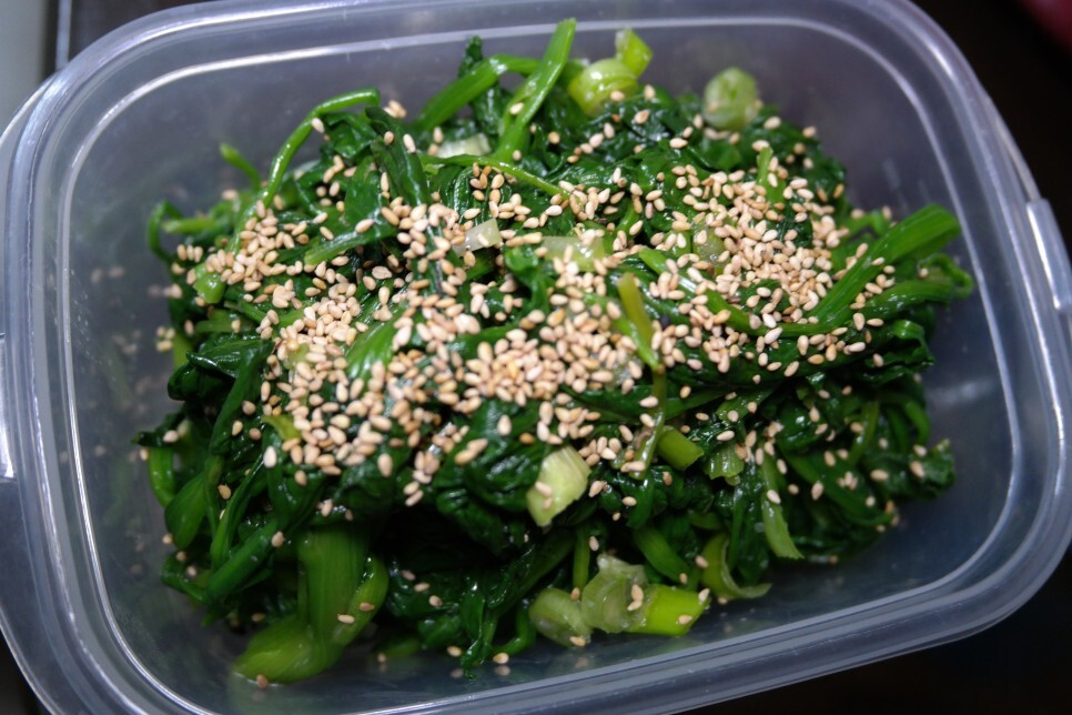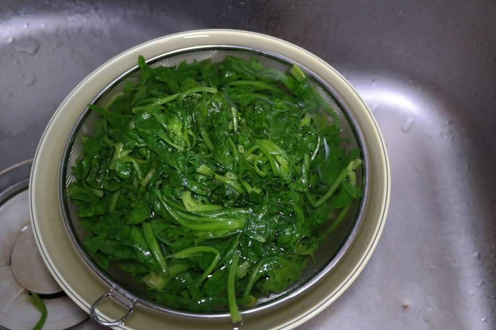 이렇게 삶은 시금치를 찬 물에서 씻어주고 양념해서 먹으면 되는데요.