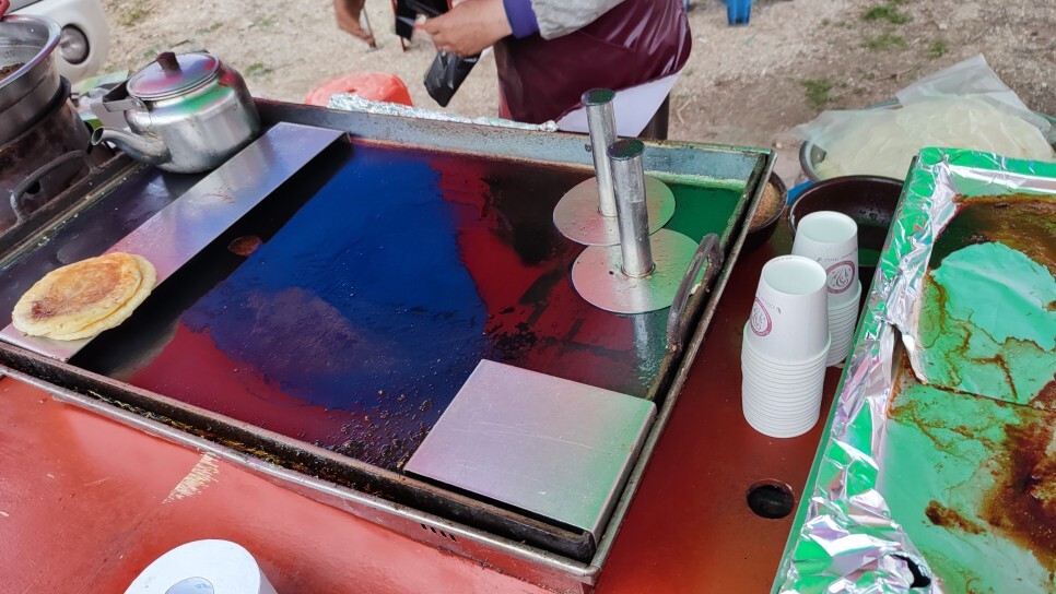 이제 장 좀 구경해 볼까 돌아다니다가 호떡 판매하시는 분을 봤습니다.