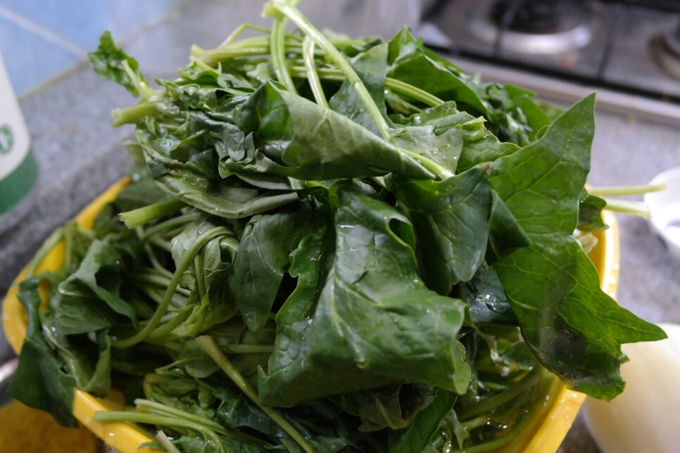 집에 가지고 와서 깨끗하게 씻어서 시금치 무침을 했습니다.