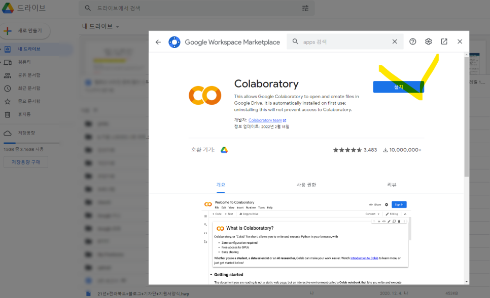 3. Colaboratory 앱 설치하기