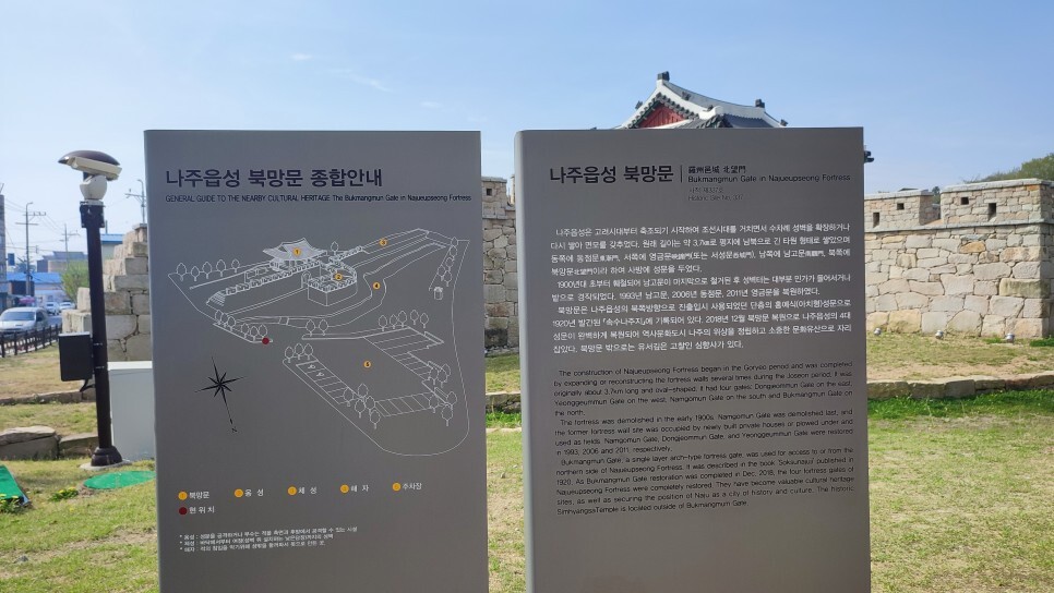 나주읍성 북망문 앞으로 넓은 주차장이 마련되어 차량 주차하고 북망문 둘러 볼 수 있음.