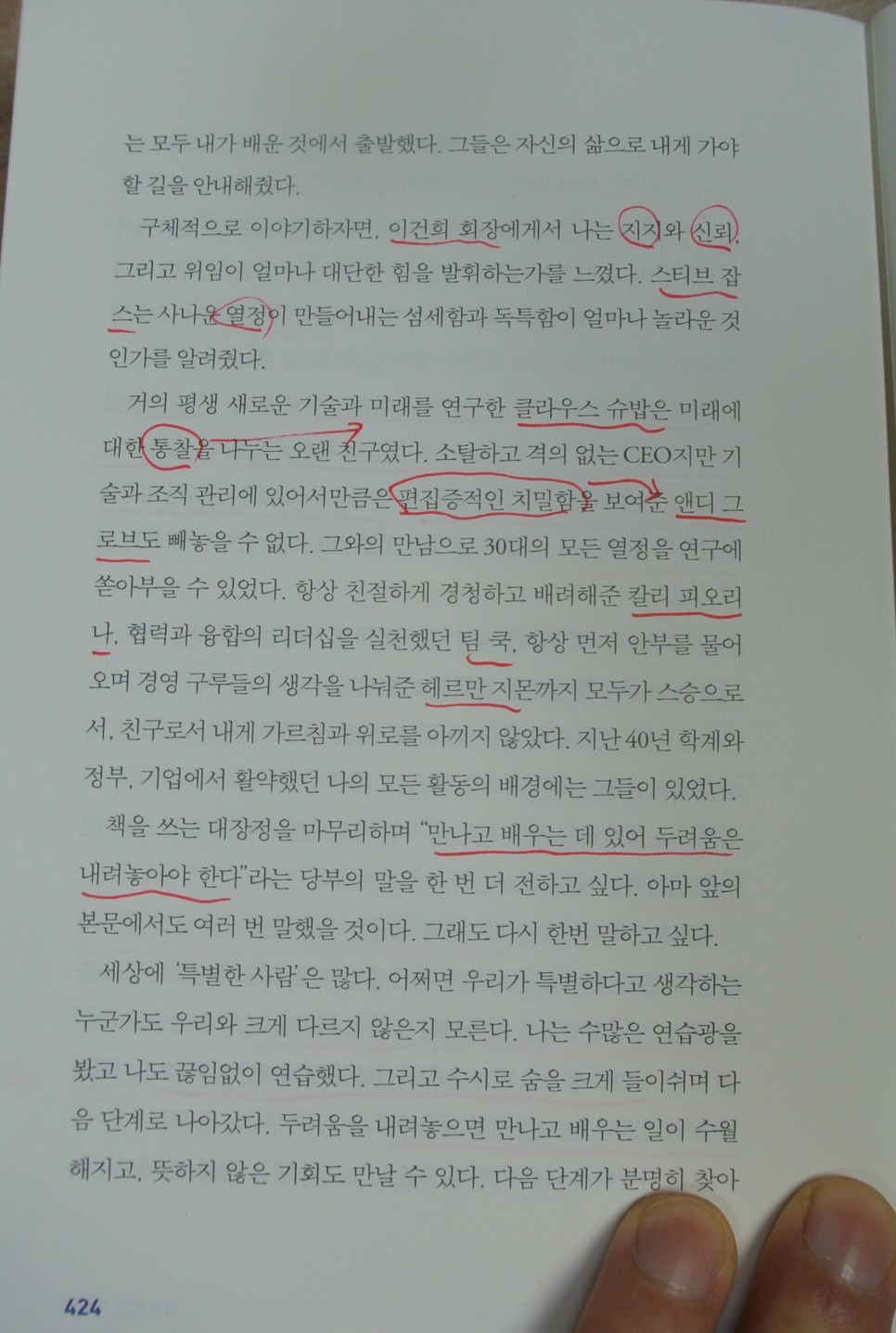 책에는 스티브 잡스 뿐만 아니라 다보스포럼을 이끄는 클라우스 슈밥 회장, 그리고 오늘의 구글을 만든 에릭 슈미트 등
