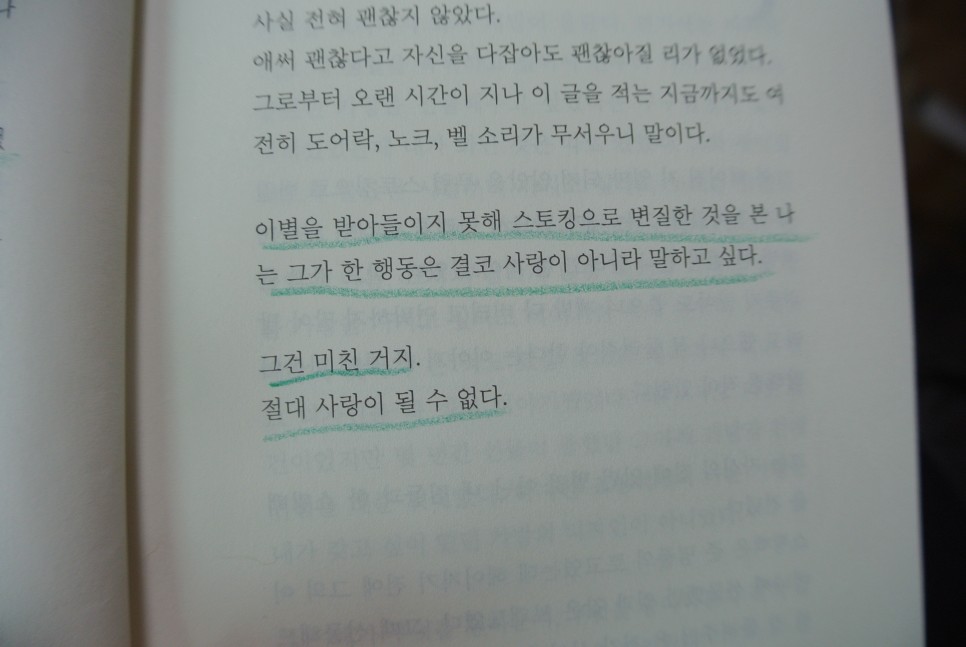 '내 손으로 직접 시간과 공을 들여 만든 사랑이라는 방 한 칸이, 이별 후엔 내 손으로 그 모든 것을 뜯어내야만 한다는 것이 잔인하게 느껴졌다.'