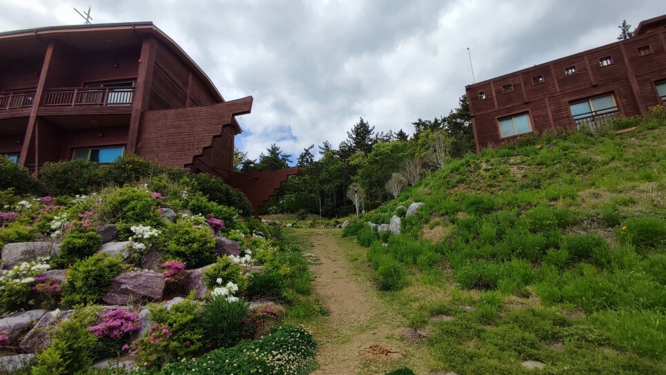 그리고 비탈진 언덕으로 되어 있는 곳에 예쁜 꽃들과 나무를 심어 놓았고요.