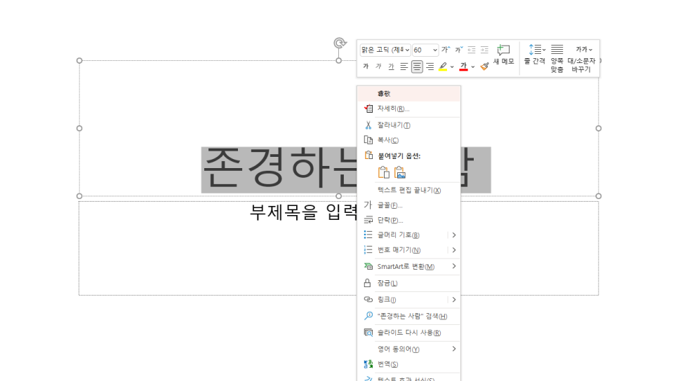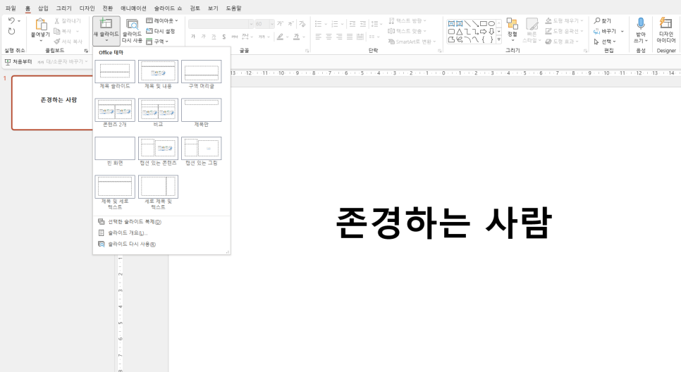 오늘은 파워포인트를 가지고 존경하는 사람이라는 주제를 가지고 파워포인트 문서를 만들어 보려고 합니다.