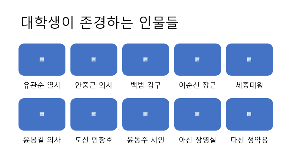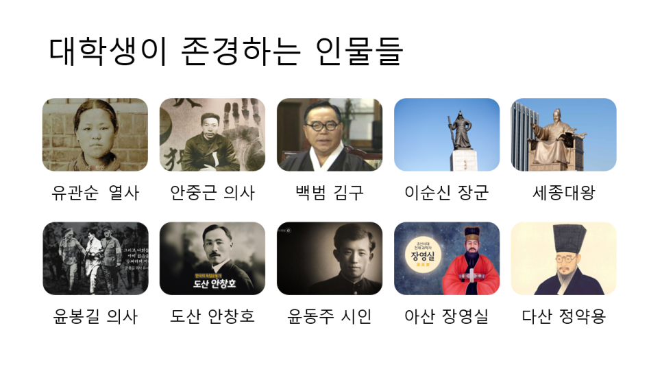 제목에는 대학생이 존경하는 인물들을 입력하고