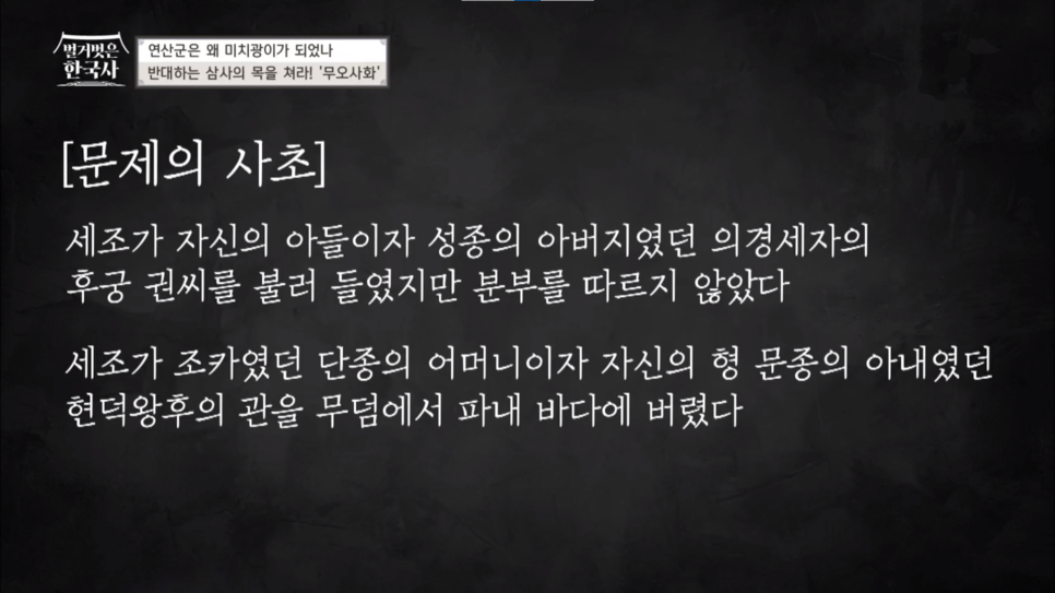 왕위에 오른 연산군은 삼사와 격렬한 갈등을 일으킨다.