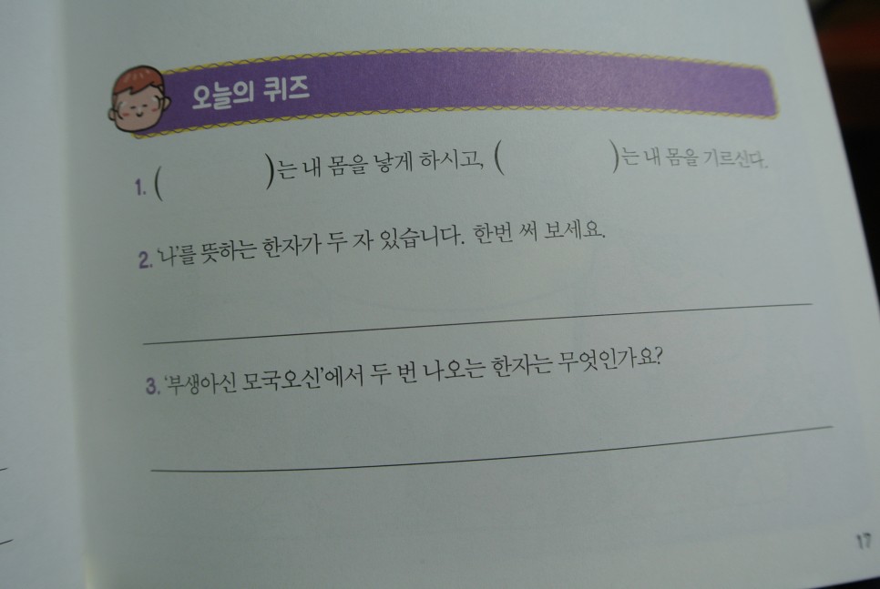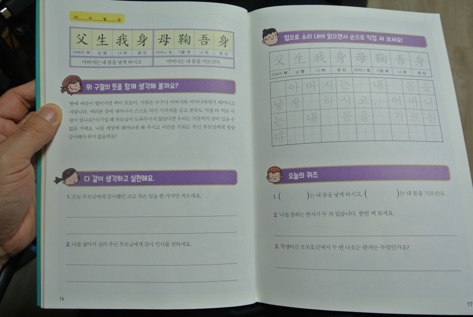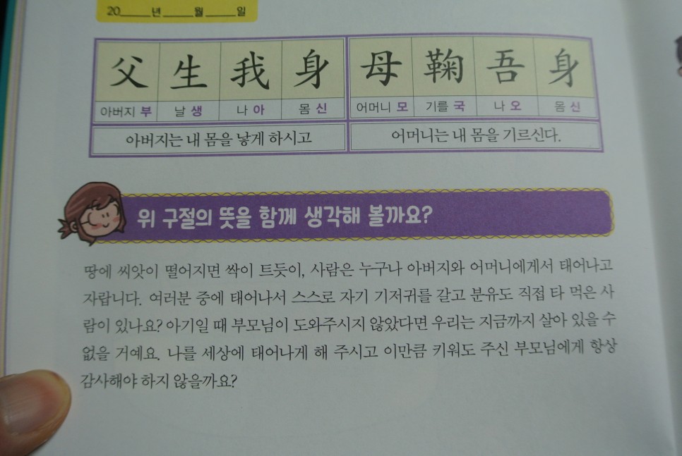 하루 30분을 투자해서 한자도 익히고 인성교육과 예절교육도 함께 할 수 있도록 꾸미셨다고 해요.