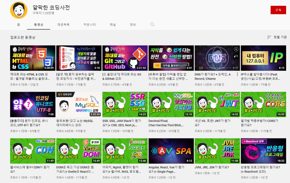 아래 링크는 유튜브 얄팍한 코딩사전 페이지입니다.