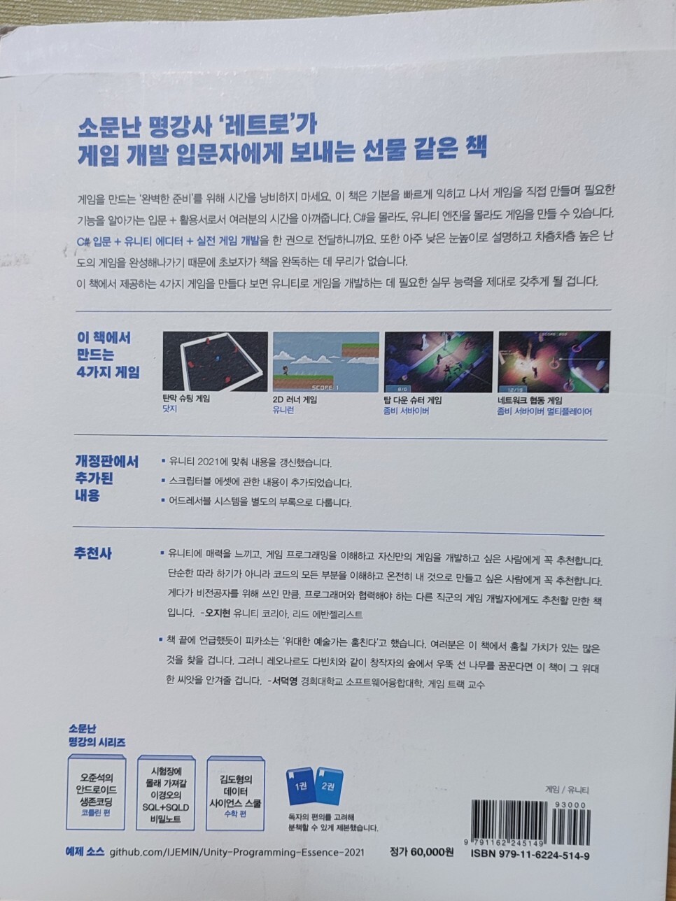 레트로의 유니티 게임 프로그래밍 에센스가 이번에 개정판을 발간했다.