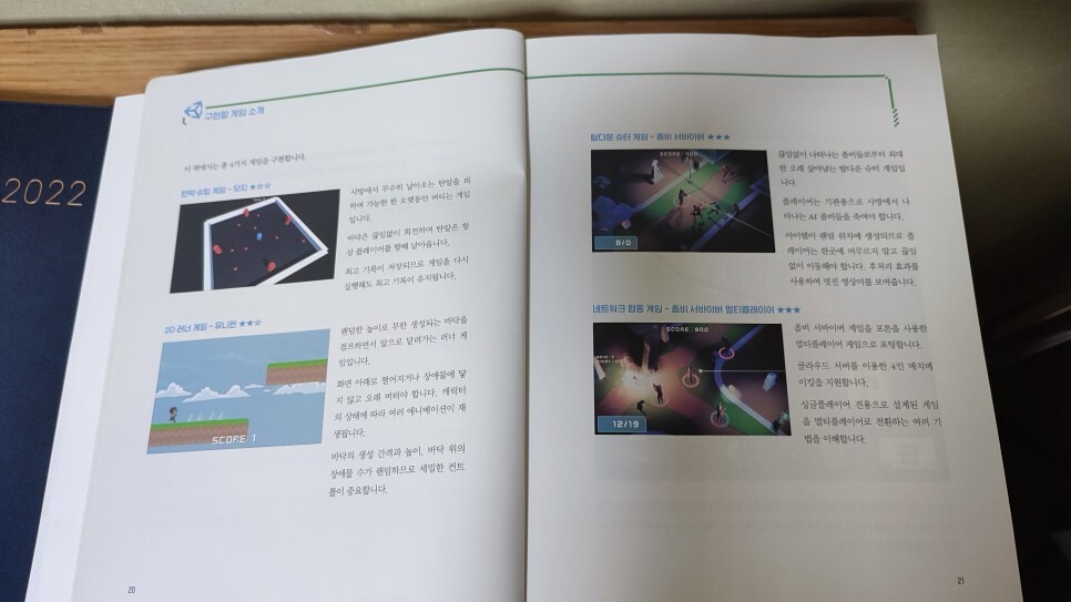 4개의 게임을 직접 따라 만들면서 유니티를 경험할 수 있도록 꾸며져 있다.