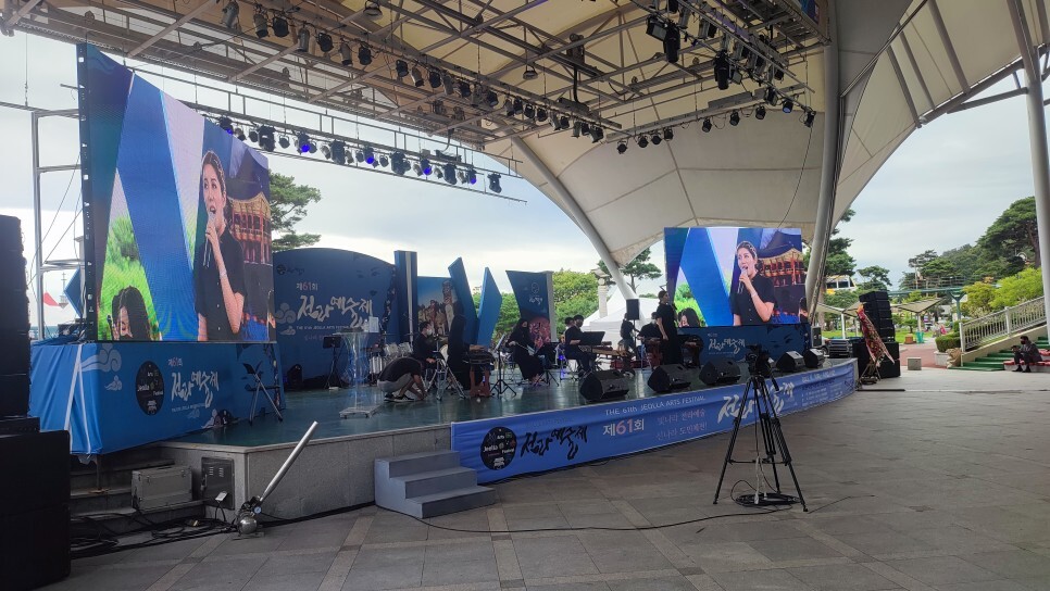 주변 산책하고 남원 캔싱턴리조트 옆에서 공연 준비를 하고 있어 잠깐 쉬면서 사진 한 장 찰칵