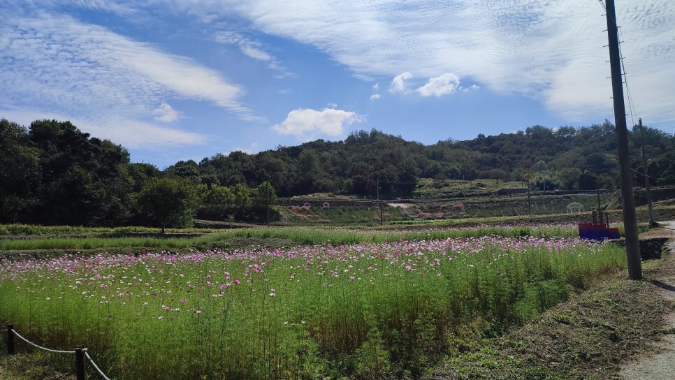 주차장에서 핑크뮬리 단지를 바라보면서 찍은 사진인데요.