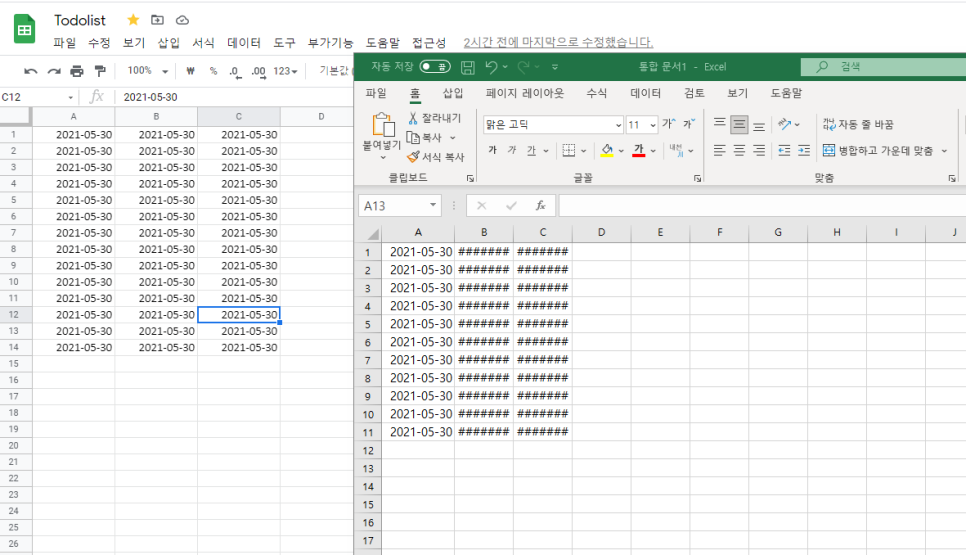 엑셀은 보이는 셀만 복사가 되지만, 구글스프레드시트는 숨겨진 행과 열도 모두 복사된다.