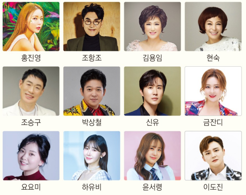 참여하는 가수는 홍진영, 조항조, 현숙, 김용임, 신유, 조승구, 박상철, 금잔디, 요요미, 하유비, 윤서령, 이도진인데요.