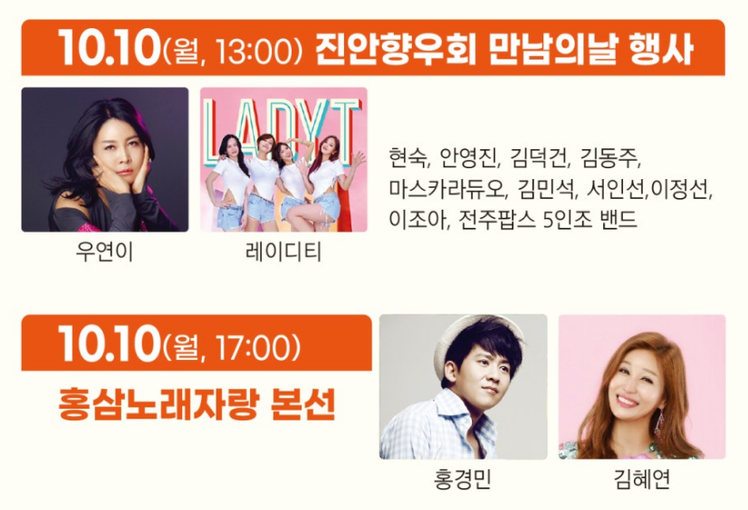 다시 활동을 시작하는 홍진영씨를 중심으로 여러 분들이 참여한 진안고원 트로트페스티벌도 기대가 되네요.