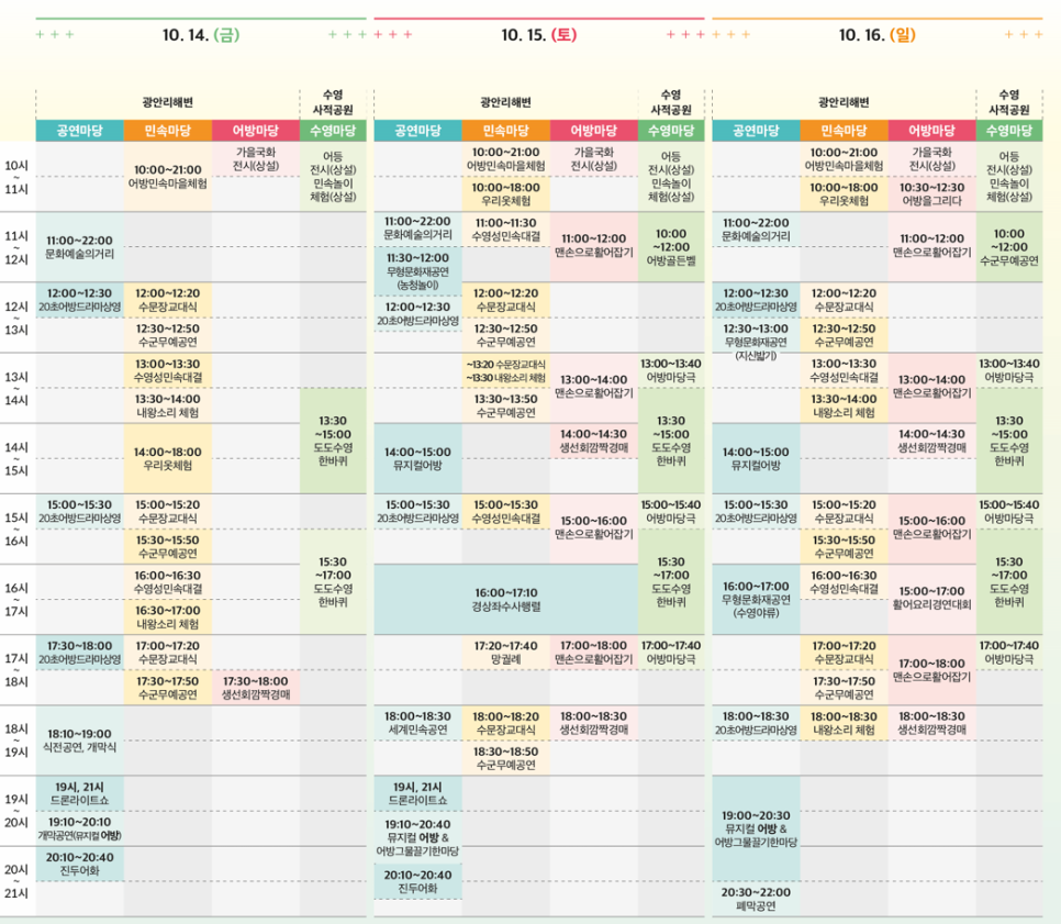 이어서 광안리 밤하늘을 수놓을 드론라이트쇼가 이어지고, 대표프로그램인 해상실경뮤지컬“어방”을 선보인다.