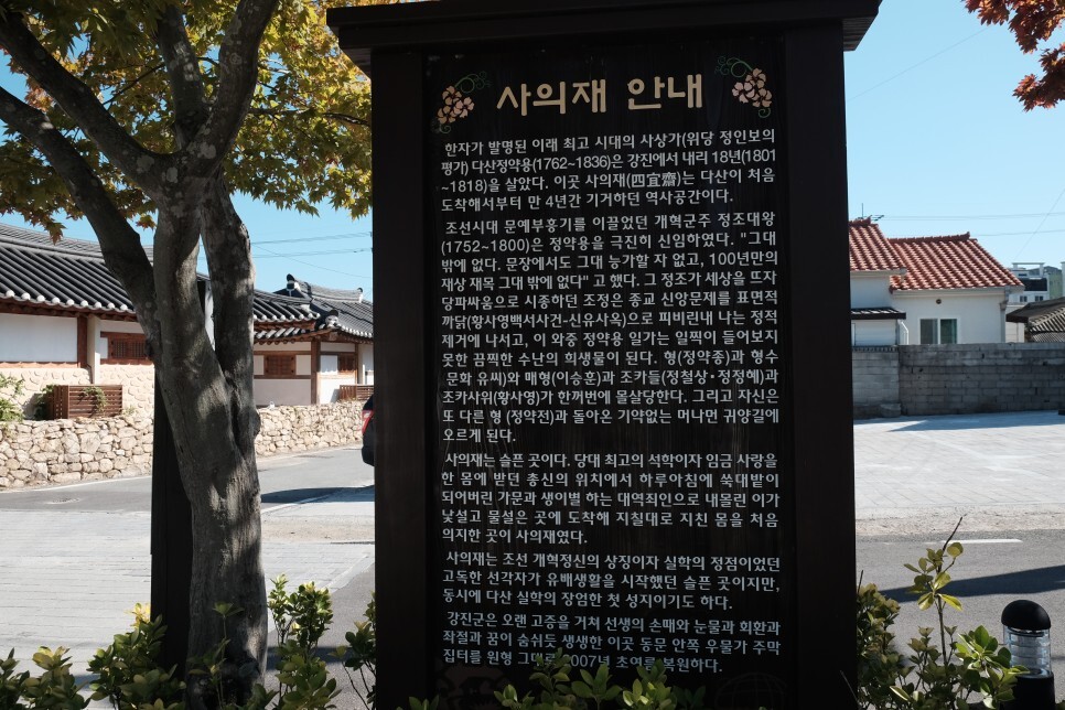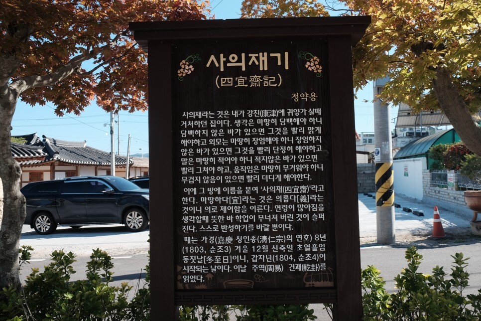 사의재는 내가 강진에 귀양가 살 때 거처하던 집이다.