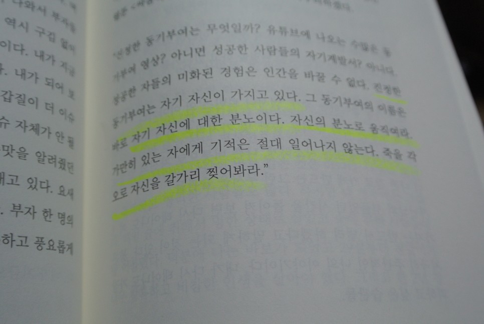 그 동기 부여를 자신에 대한 분노에서 출발하는 것이 좋다고 하네요.