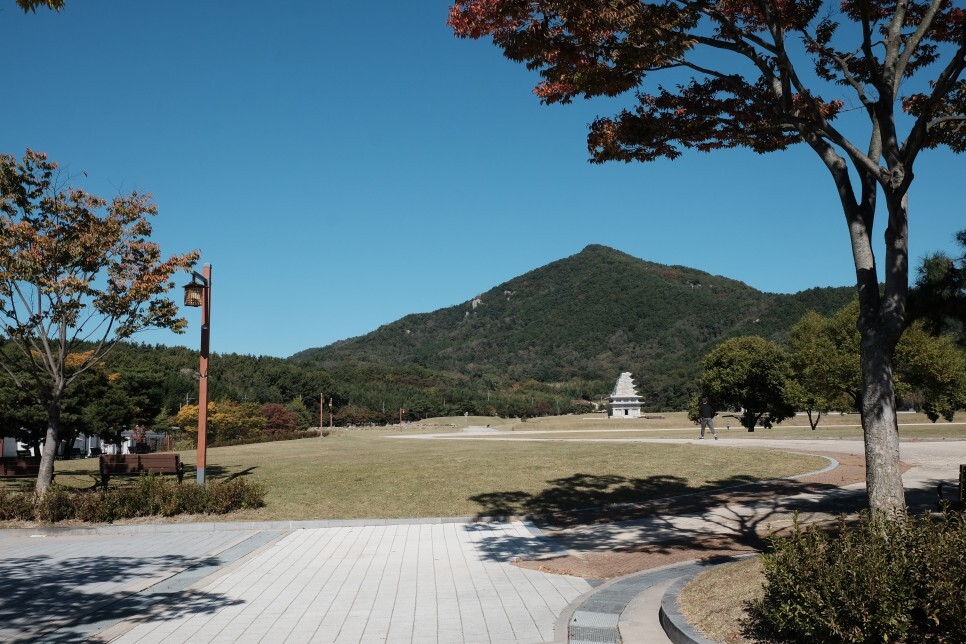 익산미룩사지 자체가 평평하게 만들어져서 끝에서 미룩사지 석탑을 봐도 온전한 모습을 다 볼 수 있어요.