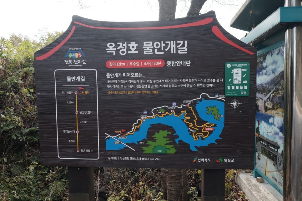 새벽에 옥정호 둘레길을 걸으며 수면위로 올라오는 물안개와 윤슬(햇빛이나 달빛에 비추어 반짝이는 잔물결)이 장관을 이룬다고 하는데요. 다음 기회에 옥정호 물안개길을 걸어 보려고요.