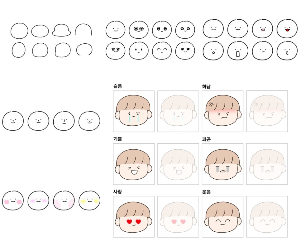 책에서 제공하는 예제 파일을 다운로드 해서 캐릭터 표정을 어떻게 그리는지 활용해 볼 수 있는데요.