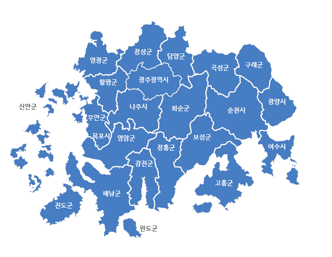 강진군 - 나주시 - 장성군 - 진도군 인데요.