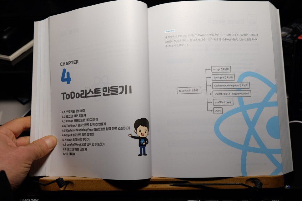 챕터를 나눠서 진행할 내용에 대한 설명과 함께 따라 하기 식으로 프로젝트를 실제로 해보게 해준다.