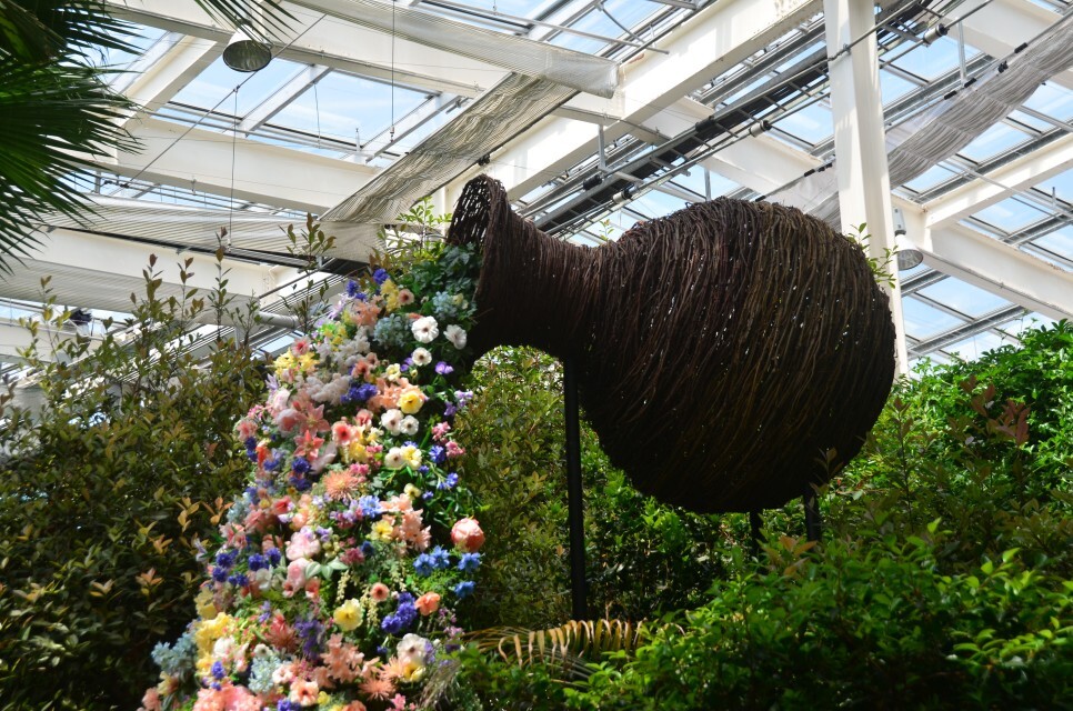 오헤브정원 위로 코끼리열차가 운행하는데요.