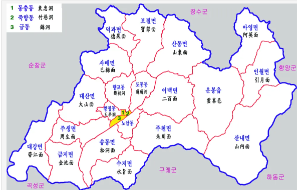 보시는 것처럼 전남 곡성과 구례와 연결이 되어 있고요.