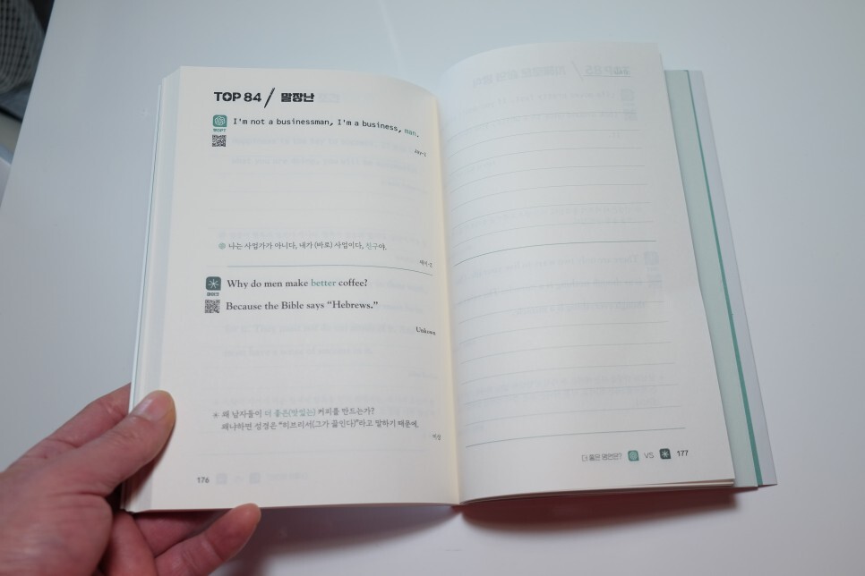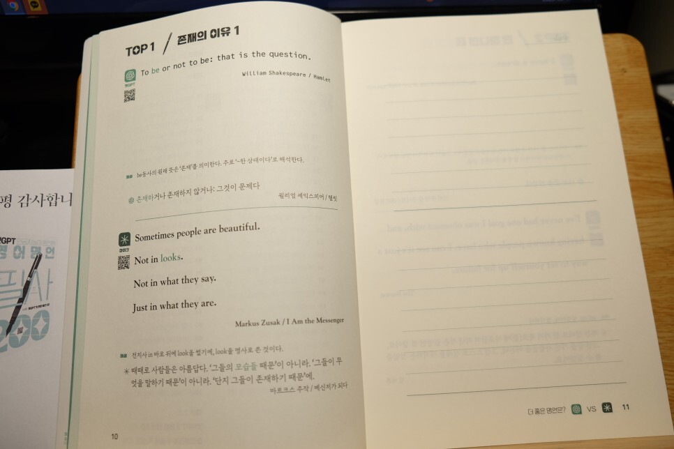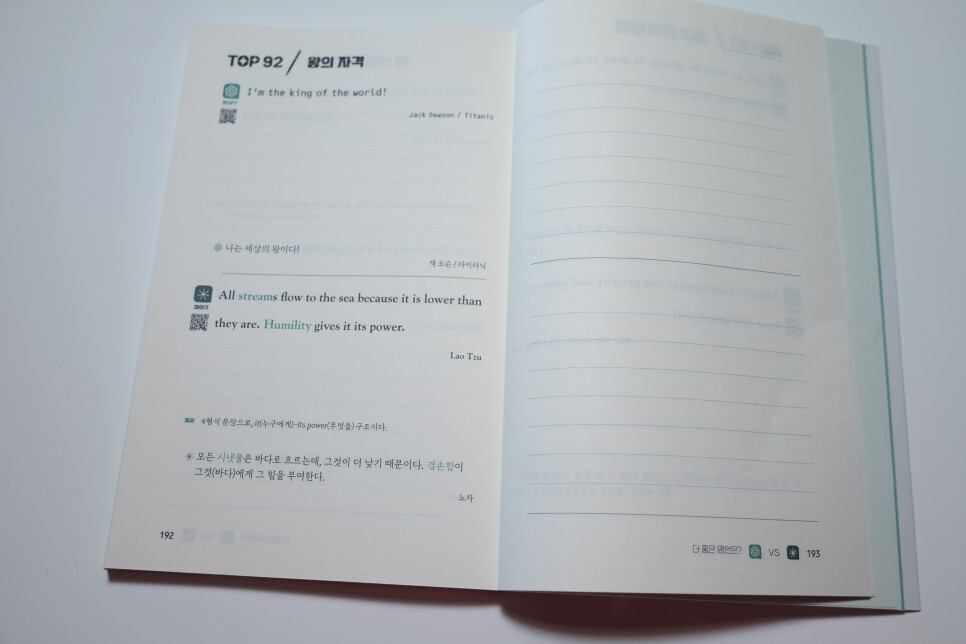 책의 구성은 왼쪽으로 영어 명언이 나오고요.