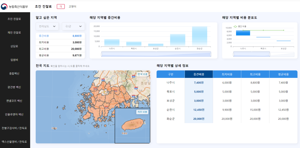 전남의 초진진료비