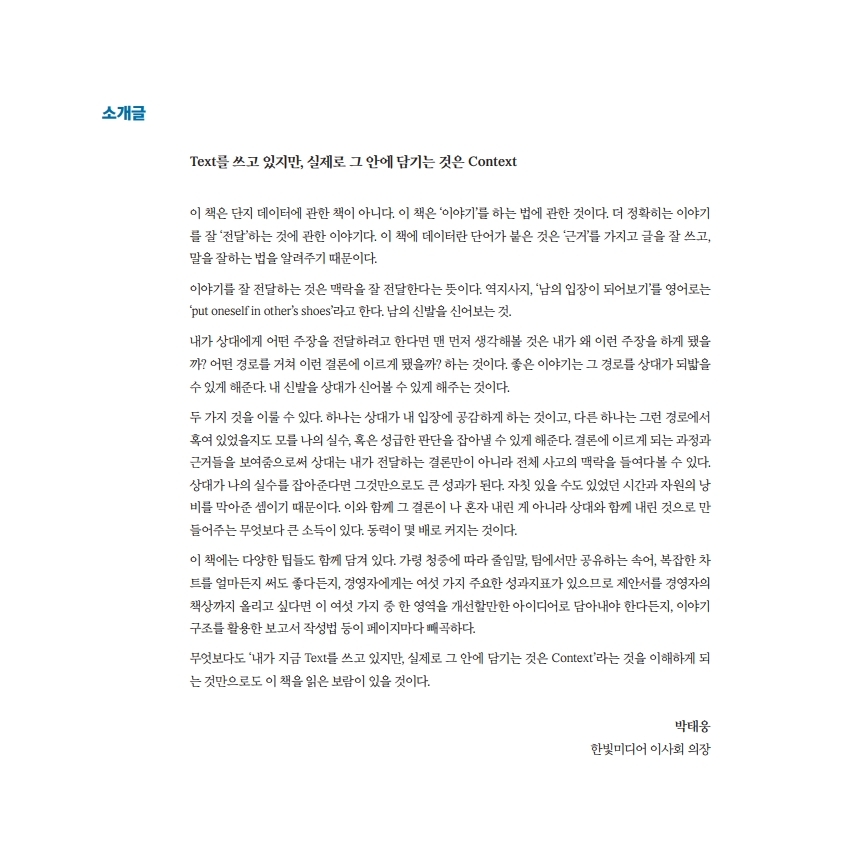 이 책의 소개글을 한빛미디어 이사회 의장이 설명해 줍니다.