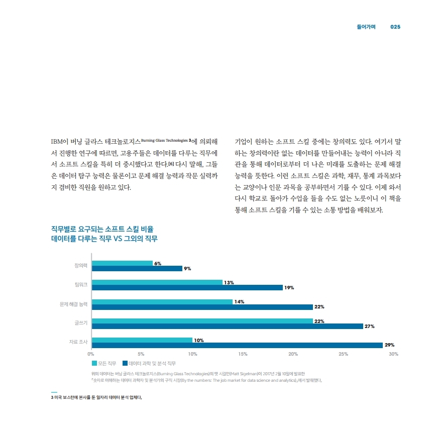 요즘 4차산업 하면서 창의력을 많이 말하곤 하는데, 실제로 직무별로 요구되는 항목을 찾아 봤더니 자료조사, 글쓰기, 문제해결 능력이 더 필요하다고 하니 소통의 능력이 더 필요한 시기인 것 같아요.