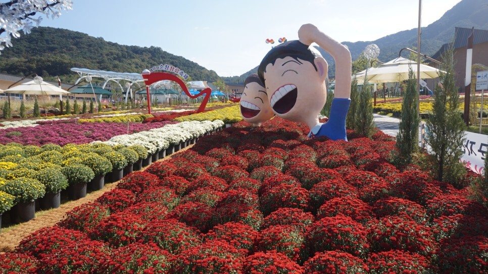 예쁜 국화꽃으로 꽃밭을 만들었습니다.