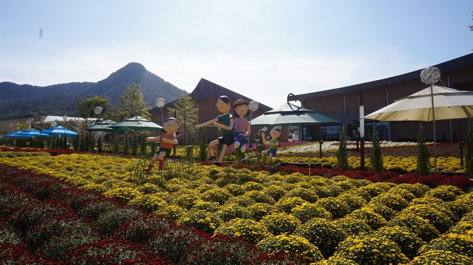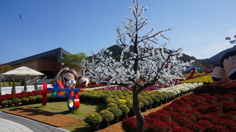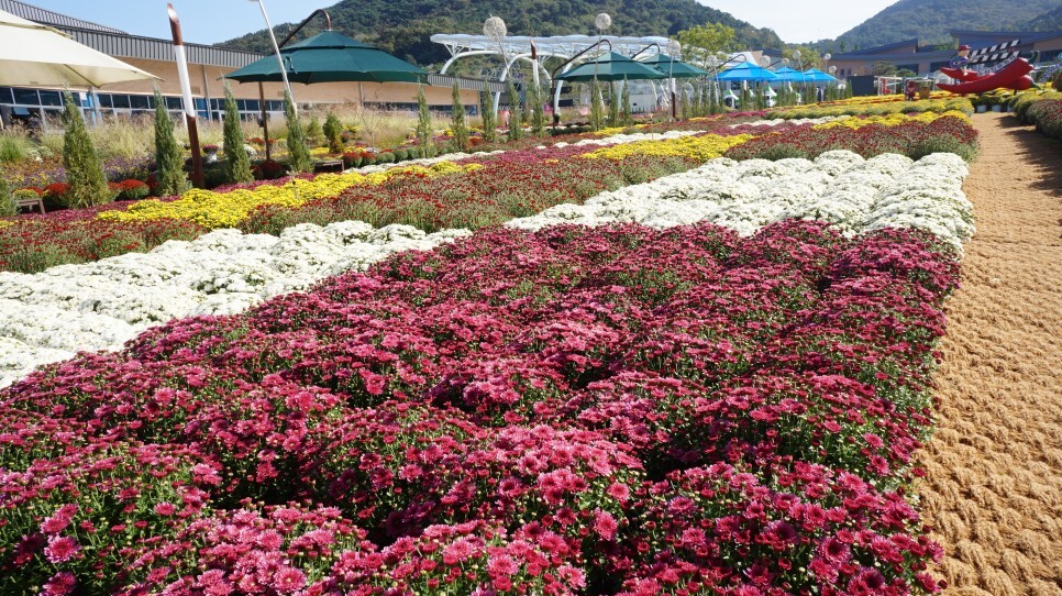 예쁜 국화꽃으로 꽃밭을 만들었습니다.
