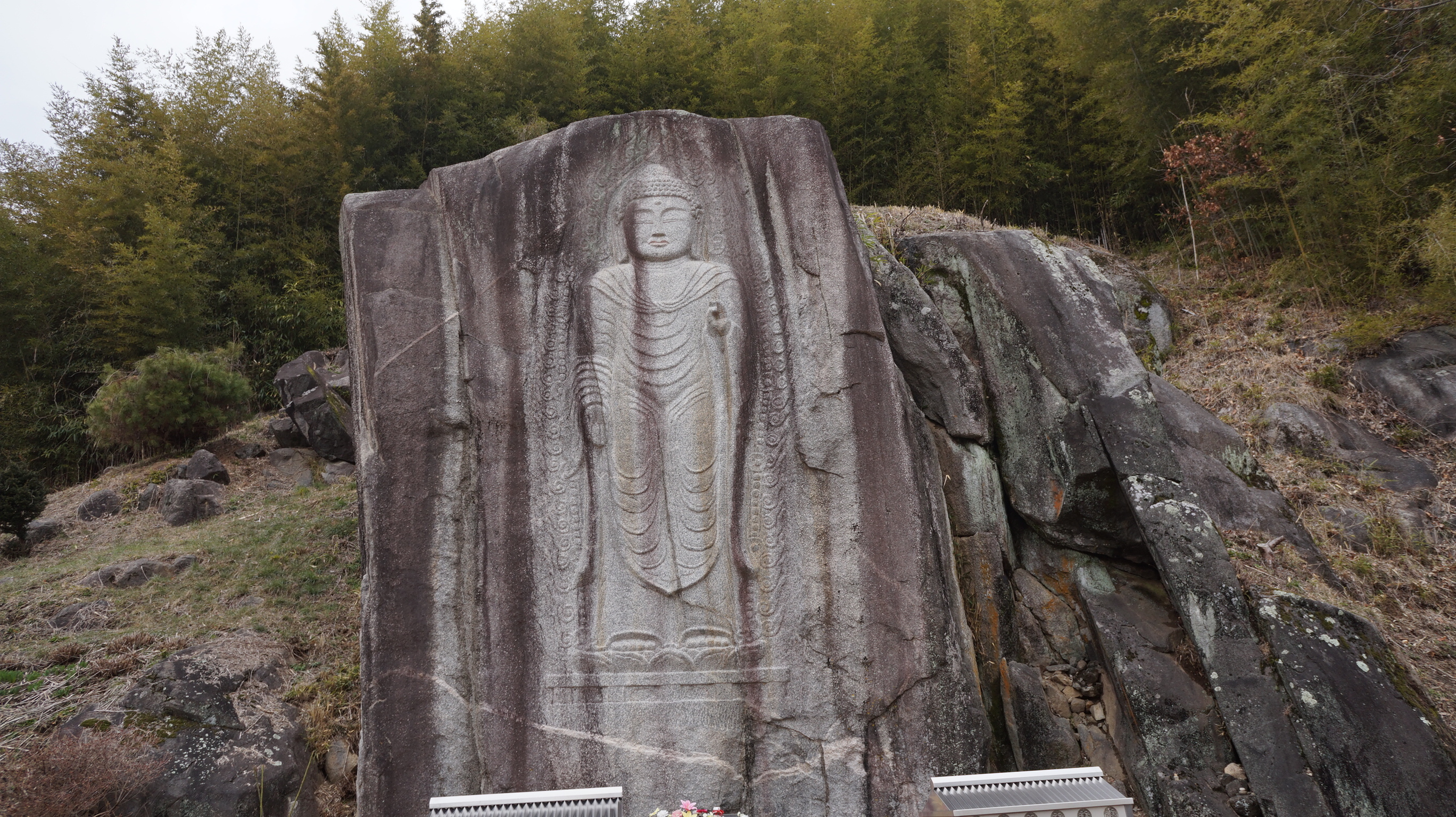 커다란 바위의 한 면을 깎아 불상을 조각했는데요.
